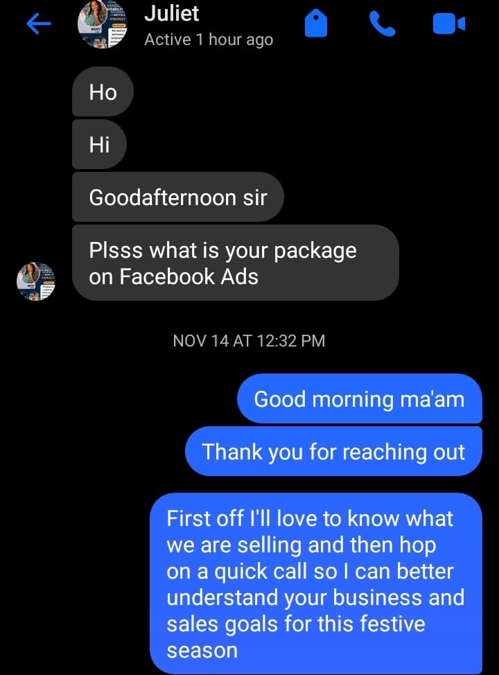 Here is another conversation of a clients that paid me sweet 200K to help her get more customers for her business